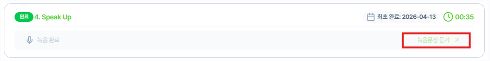 4단계 Speak up에서 녹음을 완료했는데 녹음 문장 듣기가 되지 않아요