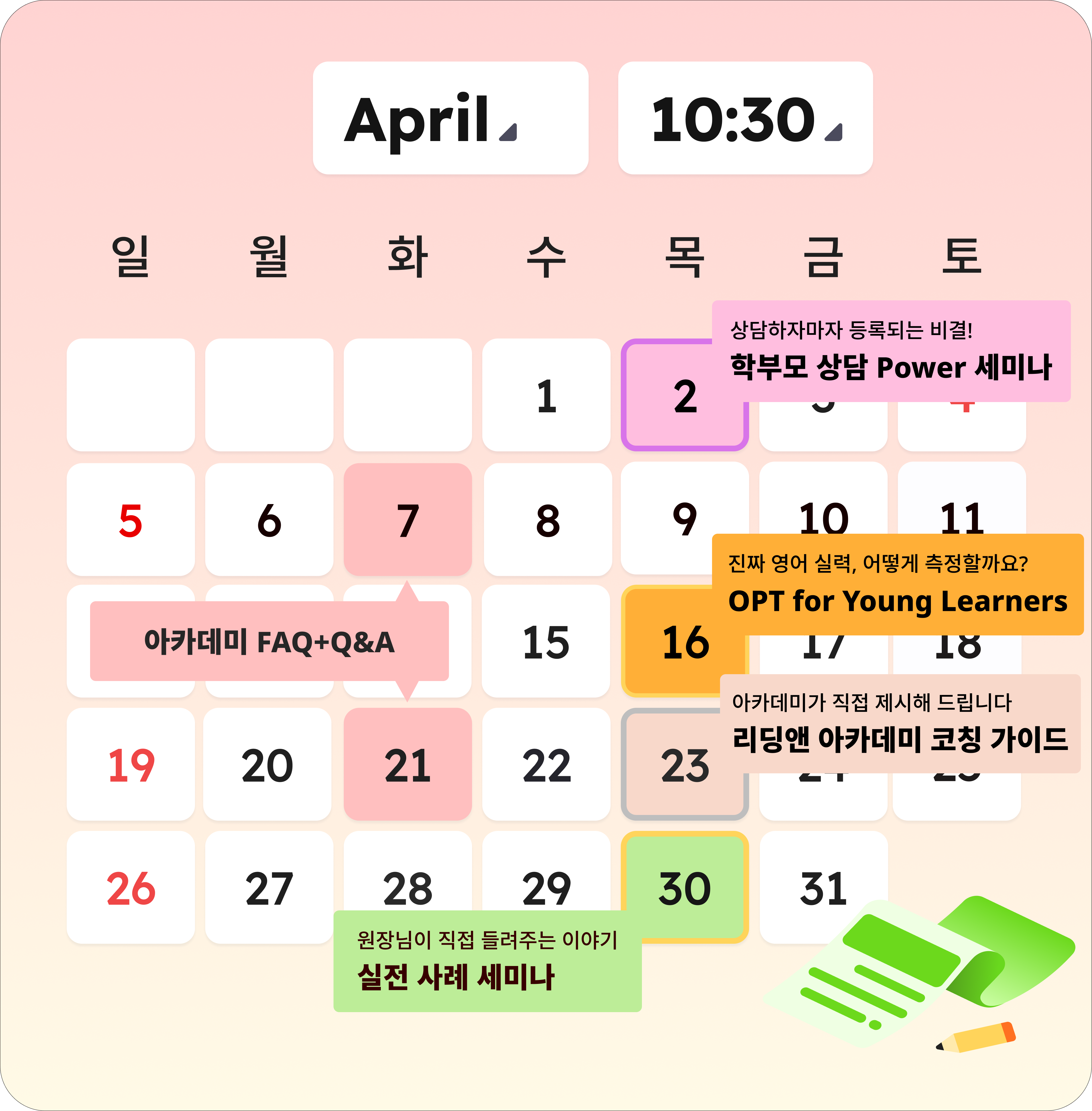 원장님들이 가장 기다리실, "리딩앤 아카데미 실전 활용 세미나"는 이번 달에도 진행될 거예요.