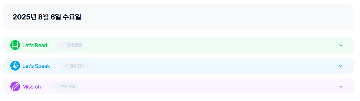 ① On the calendar, you can view the status of Let’s Read, Let’s Speak, and Mission separately. For example, if you click Let’s Speak, the calendar will only display Let’s Speak activities.