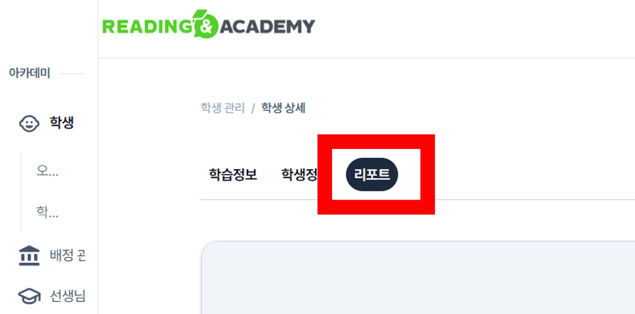 To access, open the student page → click Report (one of the three menus: Learning Info, Student Info, Report).