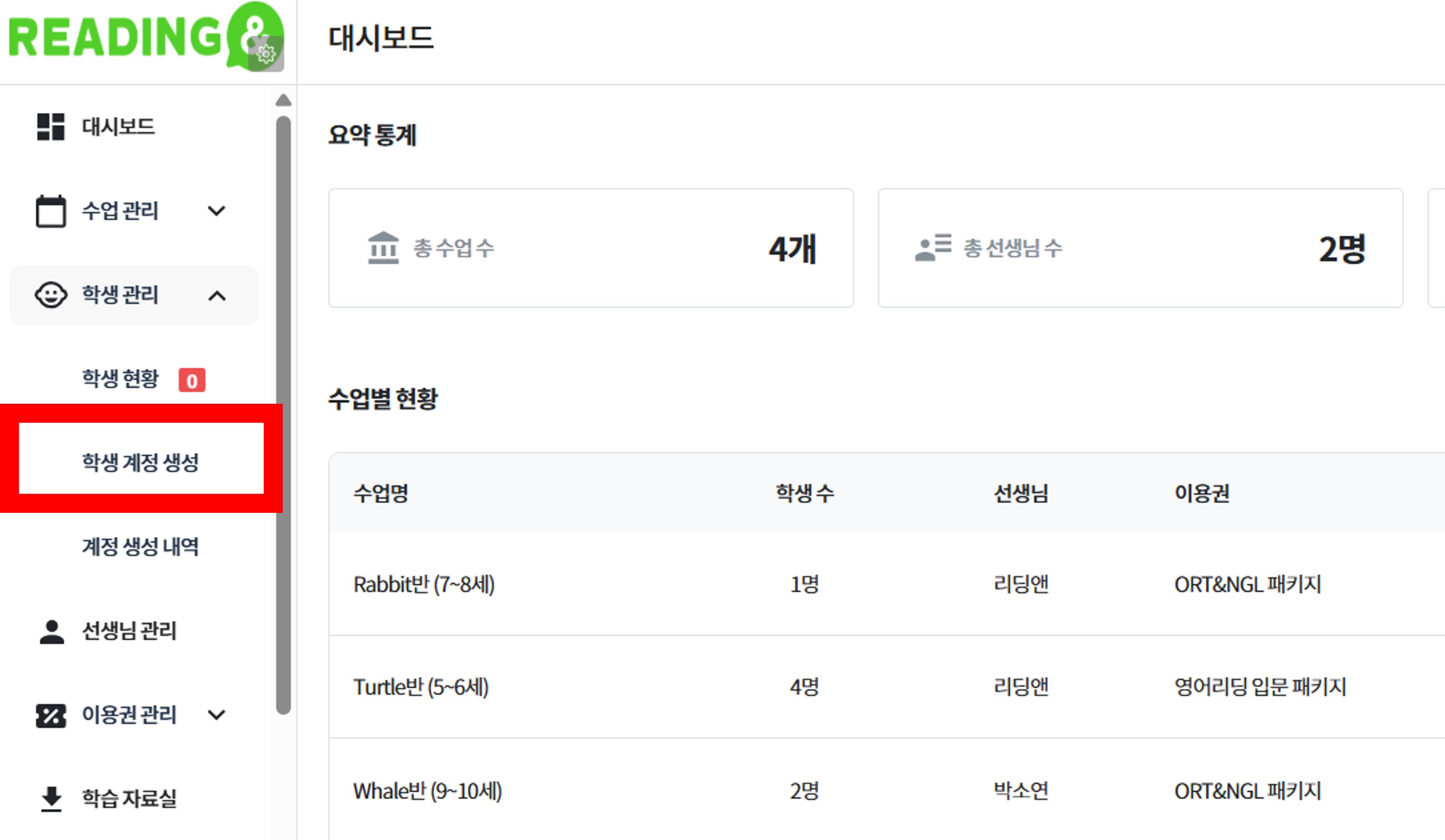 โถ Create the studentโs READING & account.